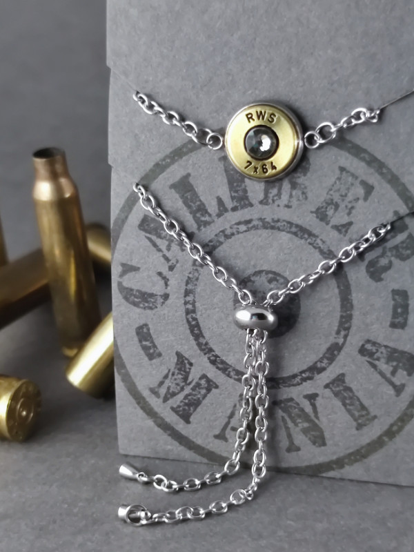 Az igazi 7x64 töltény teszi egyedivé ezt a vékony nemesacél karláncot.