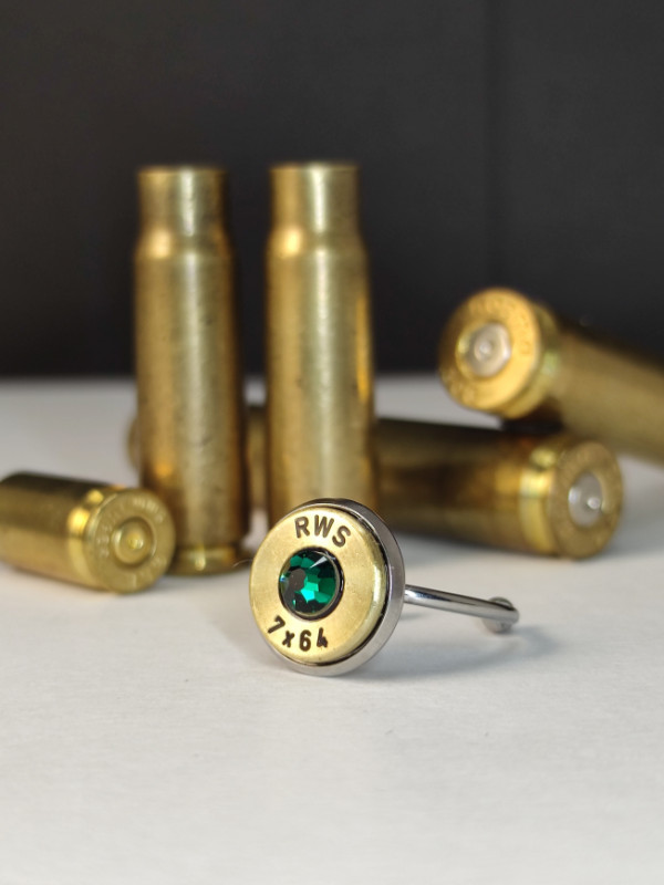 1-Lövetű Töltény gyűrű Vadász ékszer 7x64, választható kristály