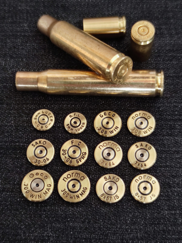 A tölténytalp felirata a talpbélyeg: a kaliber száma (a töltény mérete), és betűk (a gyártó egyedi jelzései). A képeken láthatók fordulnak elő általában, de eltérőek is lehetnek... a készleten lévő használt alapanyagok miatt.