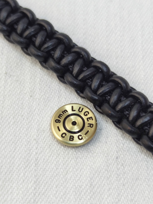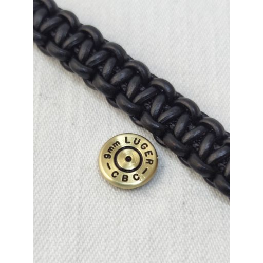 9 mm Luger Bőr Karkötő, Fekete