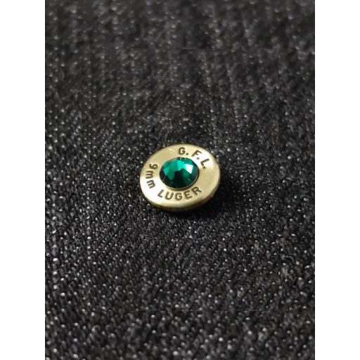 9mm Luger töltény fülbevaló Rózsás-csüngős, Smaragd zöld-Emerald