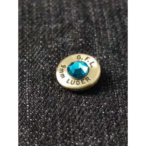9mm Luger töltény fülbevaló tollas-csüngős Türkiz-Blue Zircon