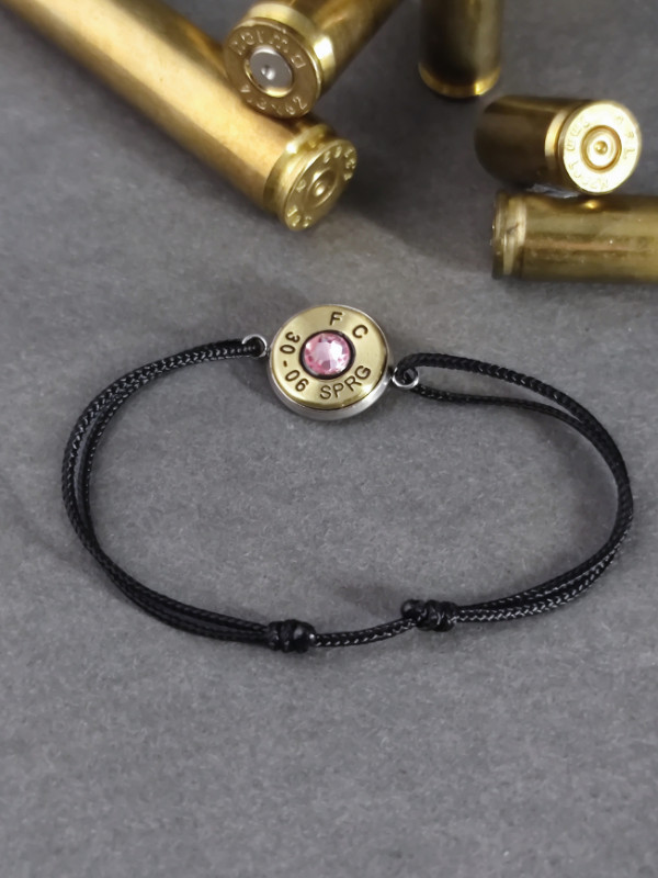 Fekete Zsinóros karkötő .30-06 Sprg, választható Kristály