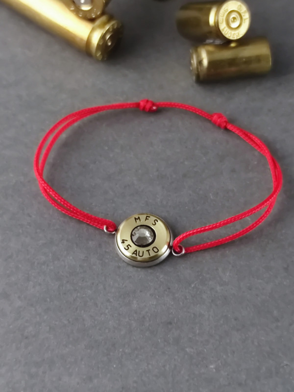 Igazi töltényhüvelyből, piros nanocord zsinórral.