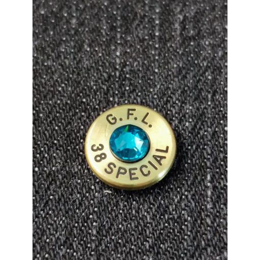 Töltény fülbevaló, akasztós .38 Spl Türkiz-Blue Zircon
