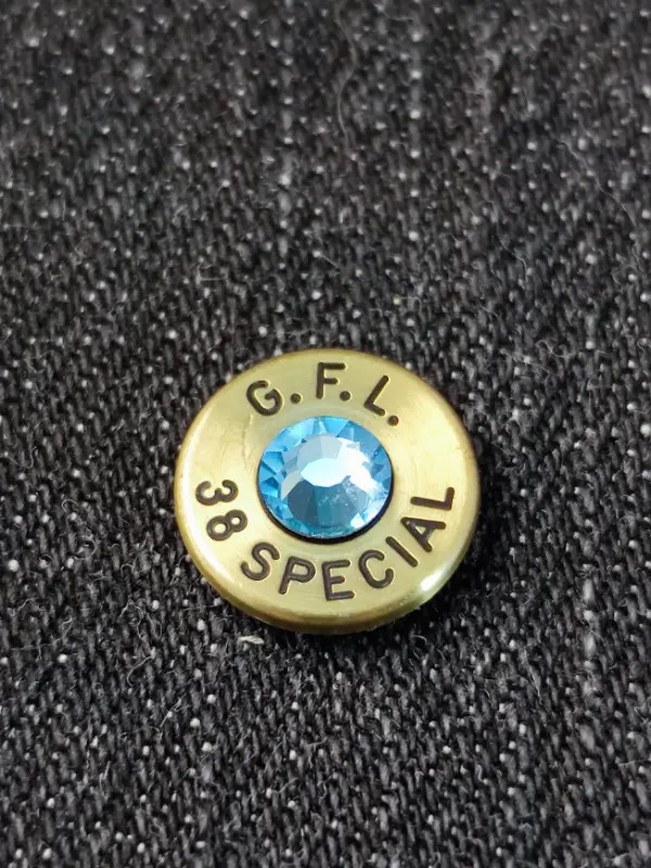 Igazi töltényhüvely és egy kis csillogás.