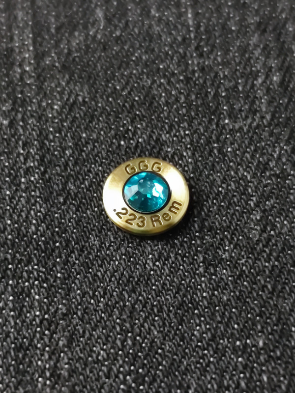 Töltény fülbevaló bedugós vadász ékszer .223 Rem Türkiz-Blue Zircon
