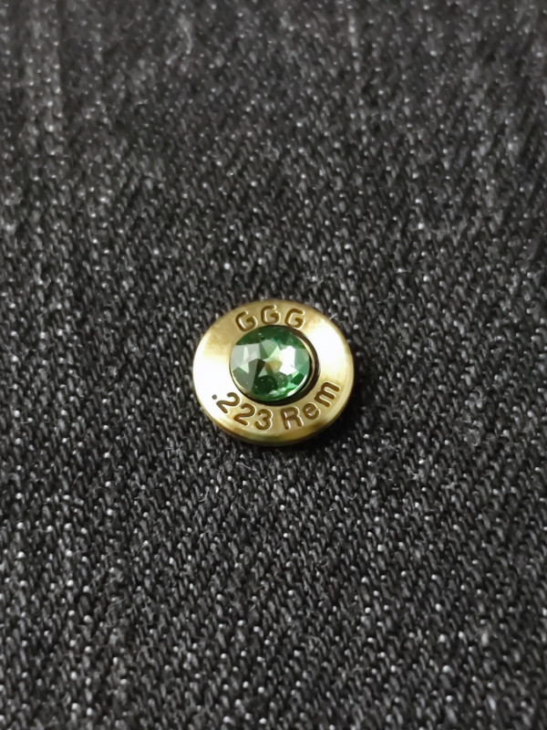 Töltény fülbevaló bedugós vadász ékszer .223 Rem Zöld-Erinite