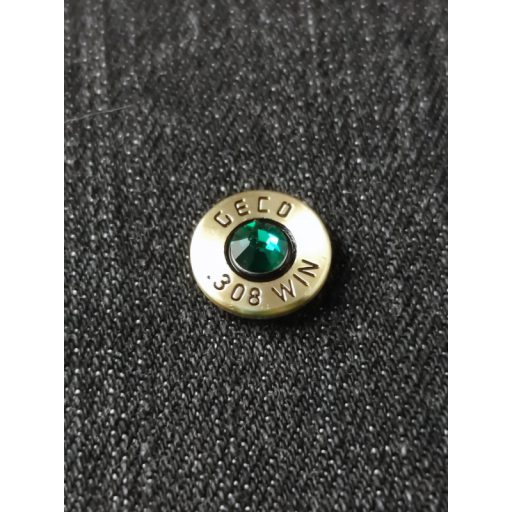 Töltény fülbevaló bedugós vadász ékszer .308 Win Smaragd zöld-Emerald