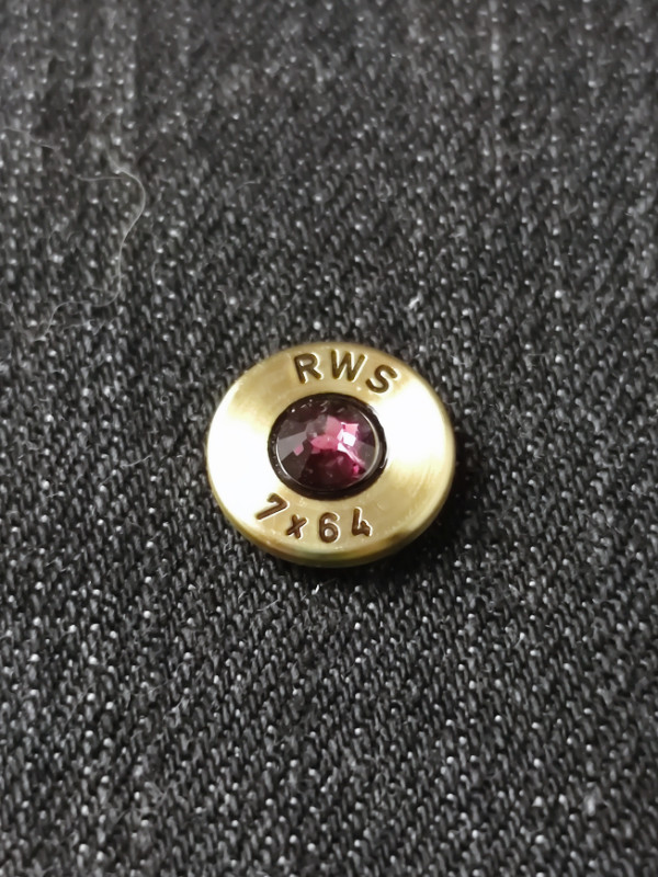 Töltény fülbevaló bedugós vadász ékszer 8x57 JS Lila-Amethyst