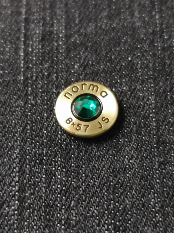 Töltény fülbevaló bedugós vadász ékszer 8x57 JS Smaragd zöld-Emerald