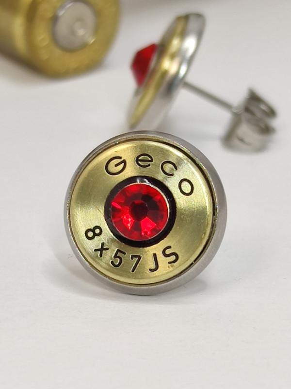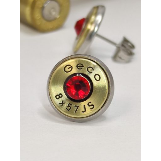 Töltény fülbevaló bedugós vadász ékszer 8x57 JS választható kristály