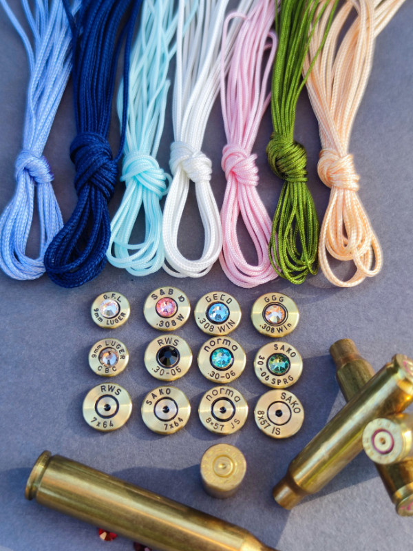 Igazi töltényhüvelyből, színes nanocord zsinórral.