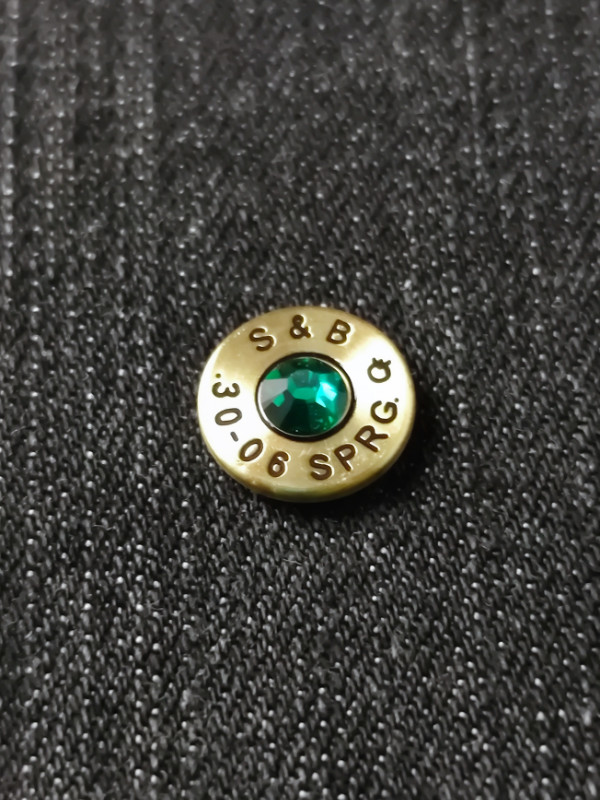 Töltény fülbevaló bedugós vadász ékszer .30-06 Sprg Smaragd zöld-Emerald