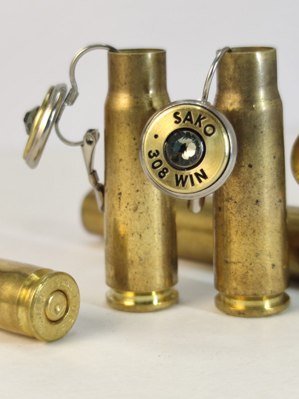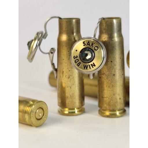 Töltény fülbevaló, franciakapcsos, vadász ékszer .308 Win választható kristály