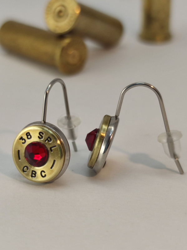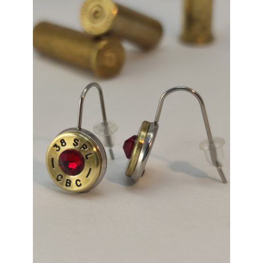 Töltény fülbevaló, akasztós, .38 spl választható kristály
